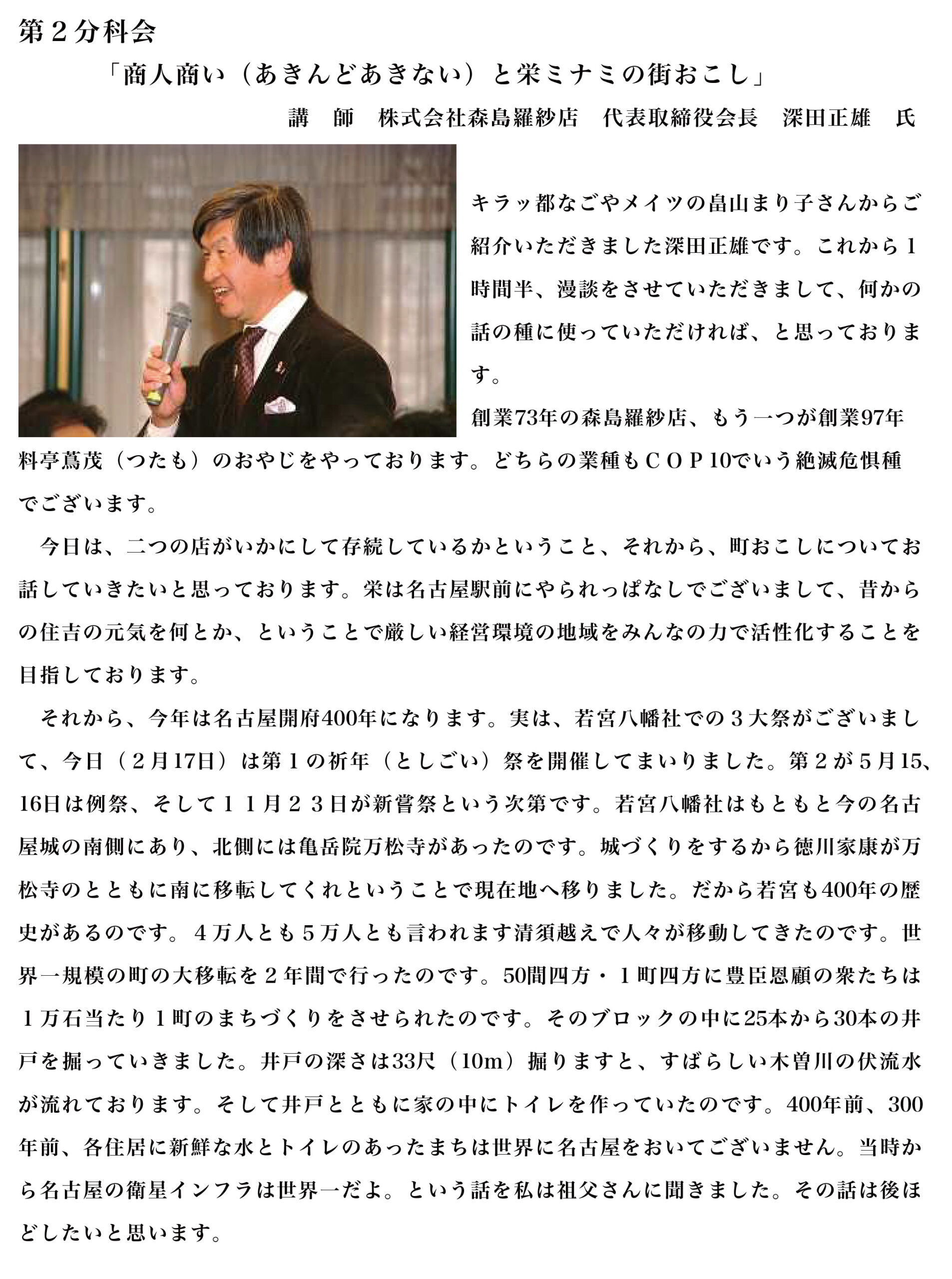 経営活性化交流大会なごや2010講演 中日ビル 抄録 商人商い(あきんどあきない)と栄ミナミの街おこし